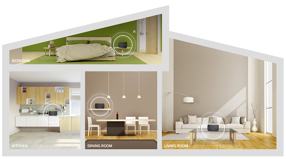 • Lyssna på olika musik i varje rum eller lyssna på samma musik i alla rum